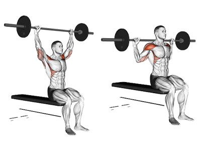 عضله هدف در پرس سرشانه هالتر از پشت نشسته، بخش جلویی سرشانه (دلتوئید قدامی) میباشد. در هنگام اجرا ، بخش میانی سرشانه (دلتوئید جانبی) ، عضله سه سر بازو (پشت بازو) ، ذوزنقه بالایی (کول) ، عضلات مرکزی (core) تحت تنش میباشند.