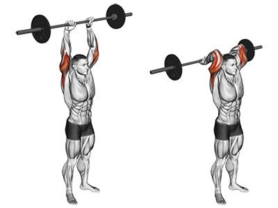عضله هدف این تمرین سه سر بازویی (پشت بازو) میباشد و فرم نشسته این حرکت برای کسانی که مشکل لوردوز ستون فقرات (گودی کمر) دارند نسبت به فرم ایستاده مناسبتر است. عضلات درگیر ثانویه در این تمرین ساعد، دو سر بازویی (جلو بازو) و دلتوئید (سرشانه) و دندهای میباشند.حرکت مورد نظر یکی از محبوبترین تمرینات پشت بازو در بدنسازی میباشد. این تمرین را پشت بازو هالتر EZ فرانسوی نشسته نیز مینامند.